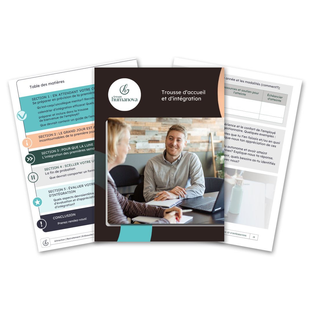 Découvrez notre trousse d’accueil et d’intégration, conçue pour structurer vos premiers contacts avec bienveillance et efficacité. Un processus d’intégration clair favorise l’engagement, le sentiment d’appartenance et la rétention de vos talents.